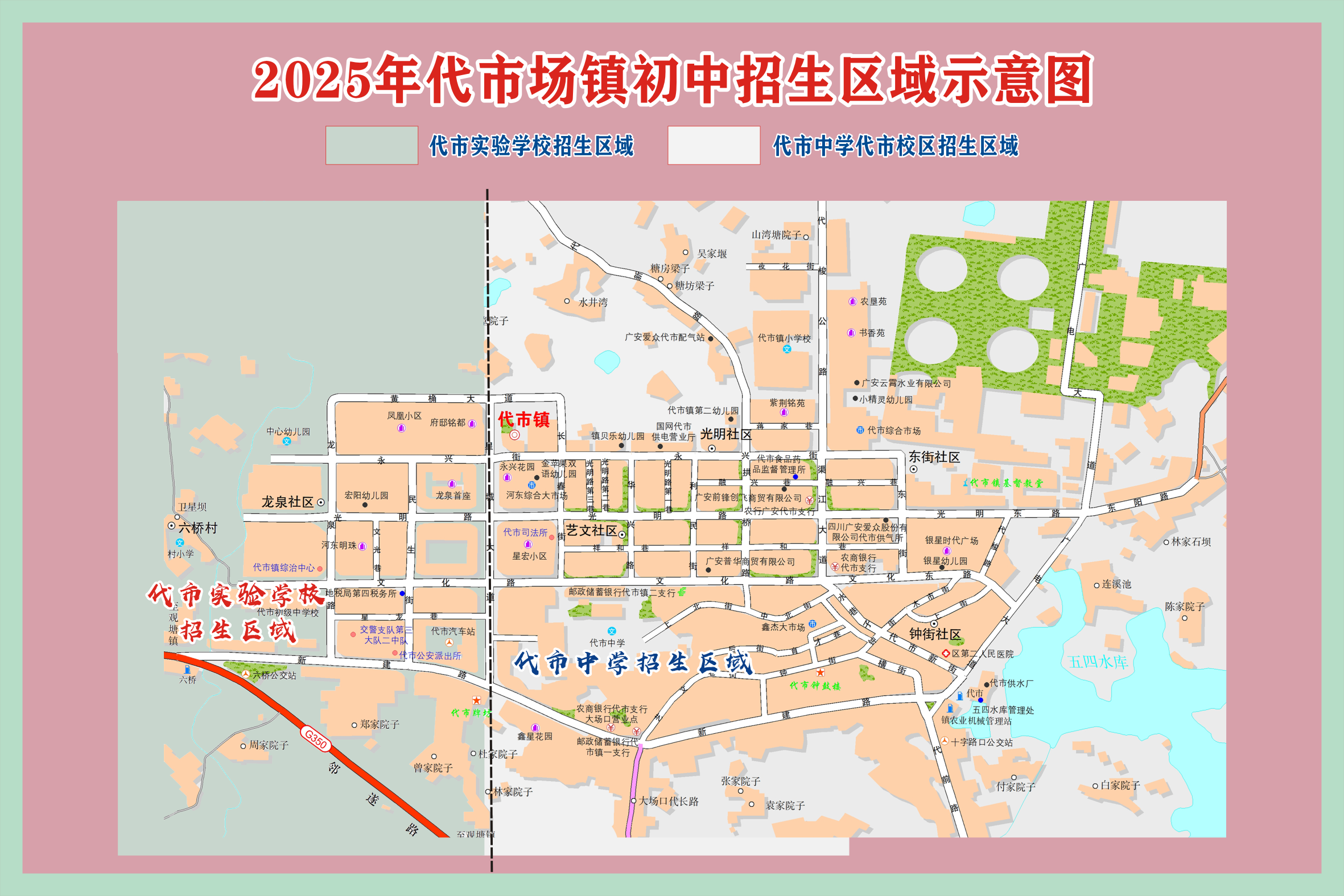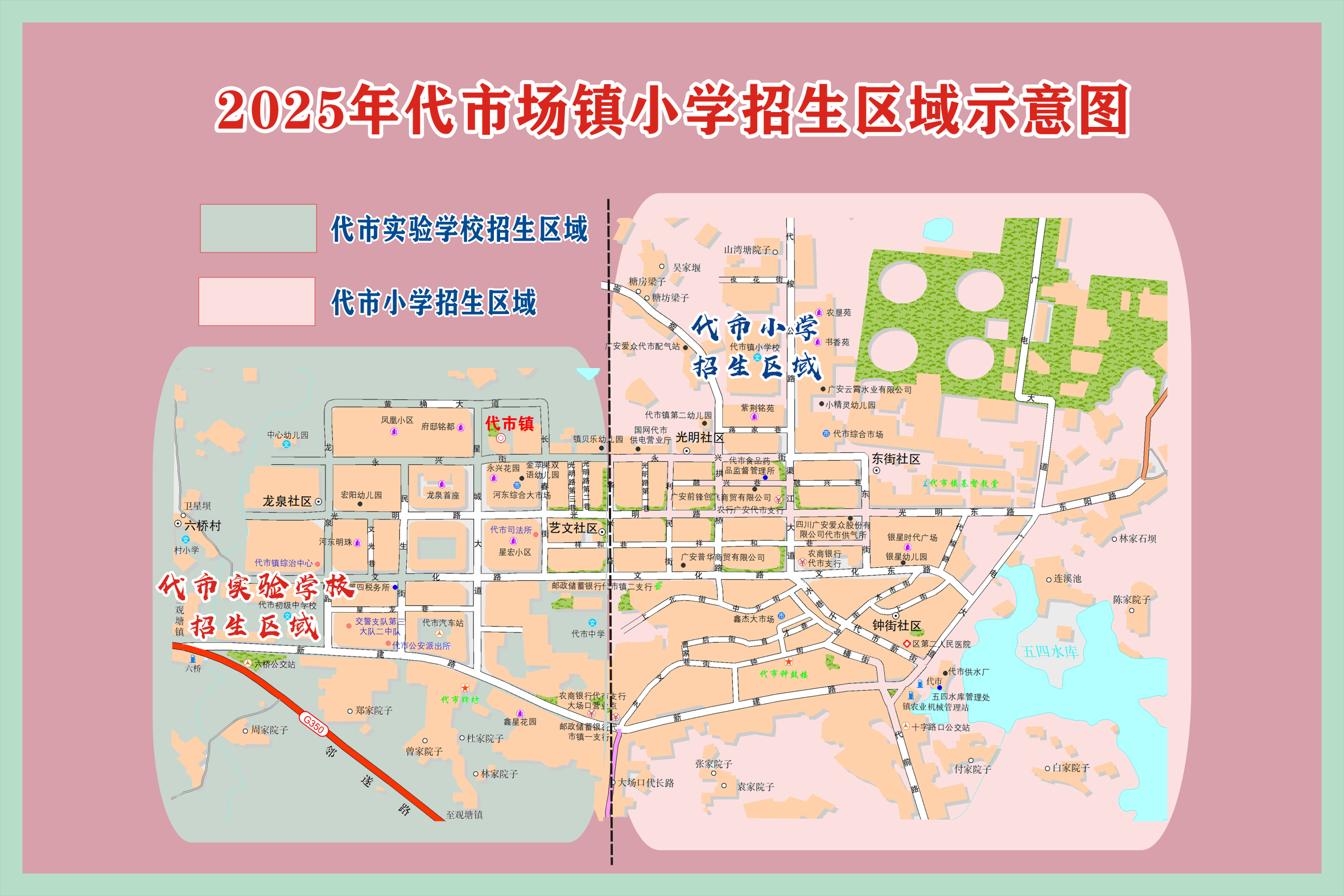②代市实验学校招生范围:华兴路及延伸线以西的场镇区域适龄儿童及代市镇辖区的行政村适龄儿童。咨询电话:0826—2744292。