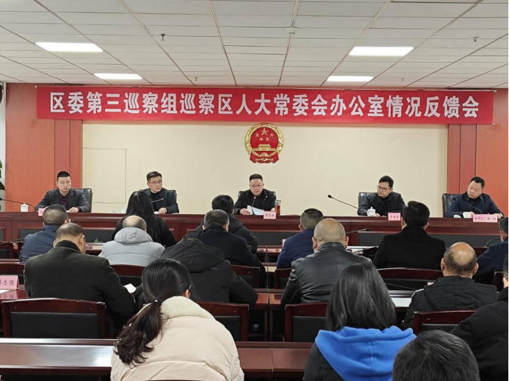 会前,区委第三巡察组组长冯昌林向区人大常委会办公室主要负责人反馈了巡察情况。反馈会上,冯昌林指出,根据区委巡察工作统一安排,2024年9月3日至10月2日,区委第三巡察组对区人大常委会办公室开展了常规巡察。通过本次巡察,发现区人大办存在政治理论学习不深入、统筹人大建设不够、履行全面从严治党责任不到位、落实党建工作责任有差距等10个问题。