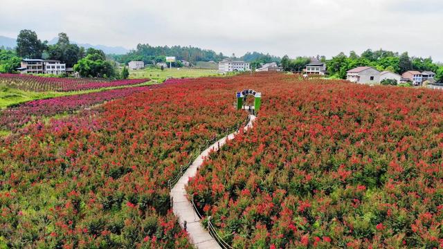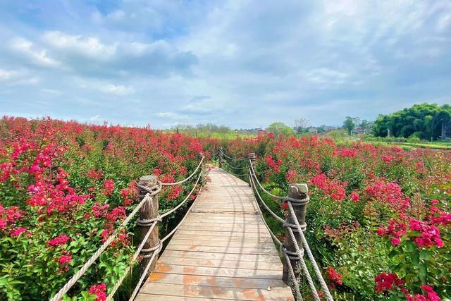 这片占地200亩的紫薇花田位于广安市前锋区观阁镇大良田园,距离前锋城区10多分钟车程。包括紫薇花田在内,大良田园的3000余亩花卉苗木基地已经成型,景观植被以紫薇、樱花、红枫、三角梅为主,培育花卉苗木30多个品种、250万株,形成“花香满园,大良田园”特色花卉景观。