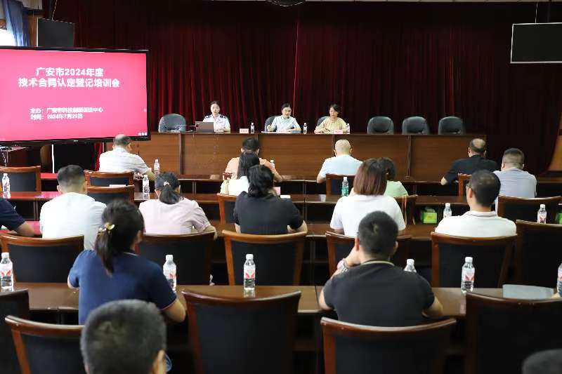 7月29日,广安市2024年度技术合同认定登记培训会在市科技局二楼报告厅举行。此次培训会由市科技局直属事业单位广安市科技创新促进中心主办,各县(市、区)、园区科技主管部门分管负责人及技术合同登记业务人员,本市高校、部分企业代表共计40余人参加会议。